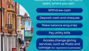 The new shared banking hub will bring cash and everyday banking services to your community, such as cash withdrawals, depositing cash and cheques and paying utility bills, as well as a community banker service, so you can speak to your own bank about more complicated matters on specific days.