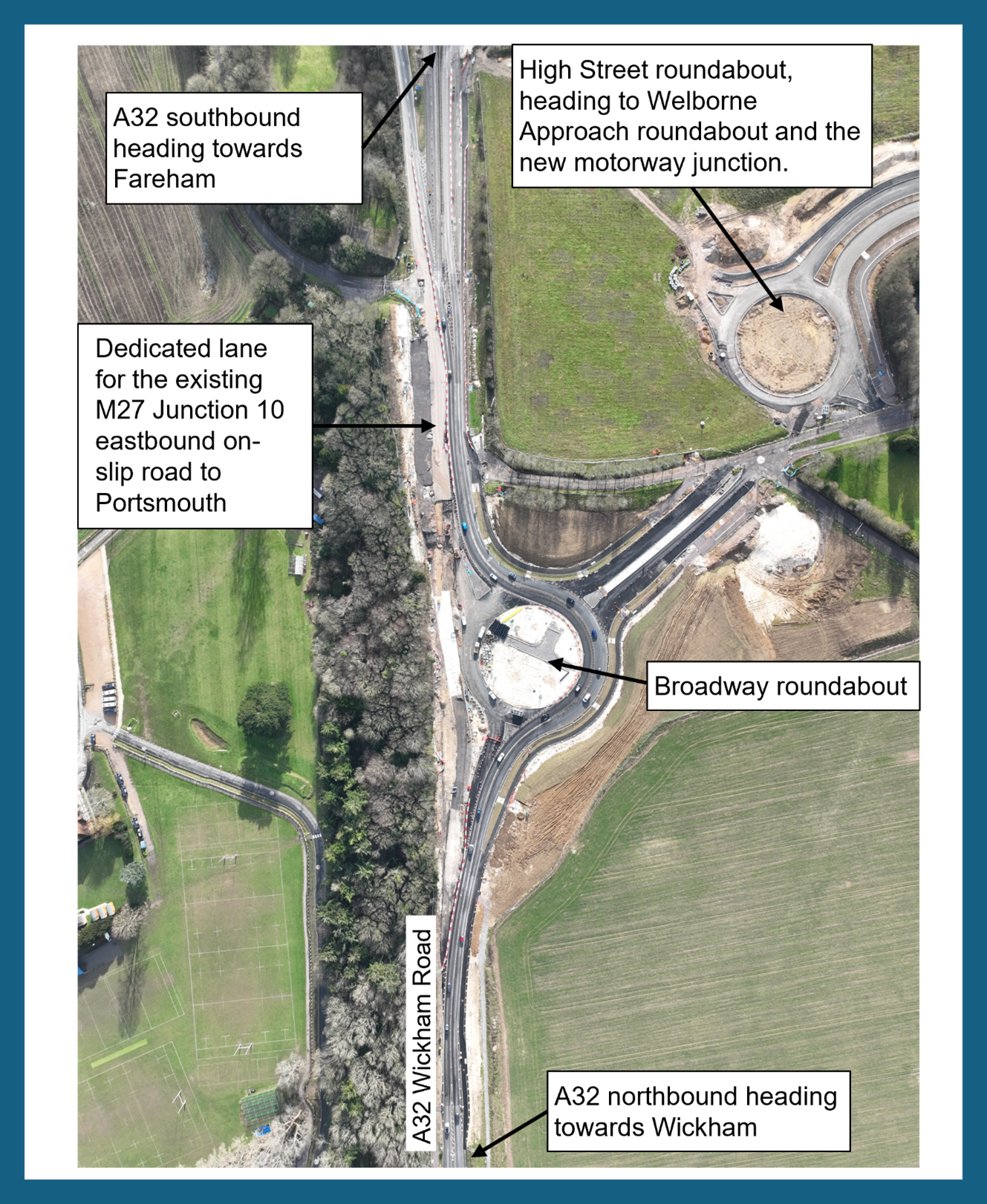 | Overnight works which will take place on the A32 Wickham Road will require two weekends of overnight closures in both northbound and southbound directions. The closure will run from Knowle roundabout to North Hill roundabout and will include the M27 Junction 10 eastbound on‑slip (towards Portsmouth) and the westbound off‑slip (towards Wickham). Drainage works on the M27 westbound off-slip will also be undertaken. To ensure these works can be completed safely, the following closures will be in place: